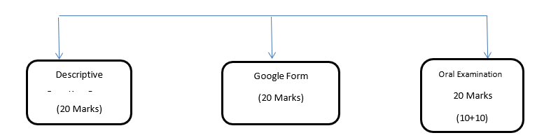 - 20 Marks(10+10) for Oral Examination:– 10 Marks for Oral Tests conducted by subject teachers during online classes and remaining 10 Marks for the Viva to be conducted for online students by subject teachers.